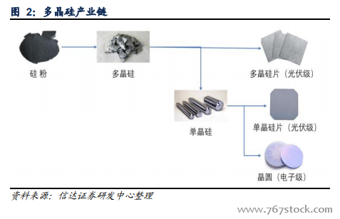 多晶硅生产成本与品质为王,后发产能有优势。从上述多晶硅生产工艺可以看出,整个多晶硅生产流程相对封闭,决定了其生产成本主要受生产过程中的能源、原材料消耗以及初始建设投资影响。我们把多晶硅成本分现金成本和生产成本进行讨论,其中现金成本包括能源、原材料、人工、制造费用,现金成本加折旧为生产成本。从通威股份数据来看,多晶硅生产成本中占比最大的为能源,即电力成本,达到 43%;其次为原材料成本,如硅粉、氯气、电石等,占 27%;由于还原炉等设备初始投资较大,折旧成本在多晶硅生产成本中占 22%,相比较而言,人工及制造费用等占比相对较小,分别为 6%和2%,但国外产能人工成本占比也较高。