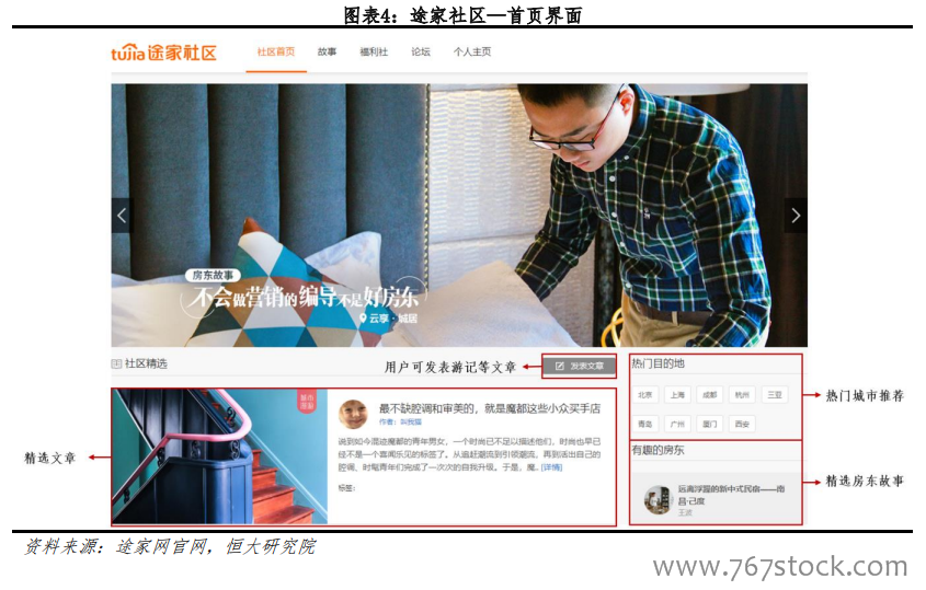 共享住宿为房东与房客之间提供交流平台,除了实现房源租赁交易,共享住宿比传统酒店更具备社交属性。共享住宿平台除了可以发布及预订房源,房东和房客还可以通过平台进行线上交流,分享各自的人生感悟、生活经历、旅行攻略等,促进其社交关系。例如,途家推出的途家社区板块,房东可以在上面分享自己的故事并介绍其房源,用户则可以在上面分享自己的所见所闻、旅游攻略等。共享住宿的社交属性可带给用户独特的住宿体验,同时加深房东、房客相互之间了解,降低用户戒备心,促进用户之间信任程度的提升。