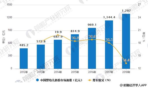 2012-2018年中国婴幼儿奶粉市场规模及增长情况