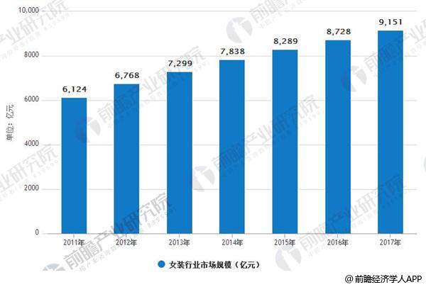 女装市场规模持续扩张,到2017年规模近万亿