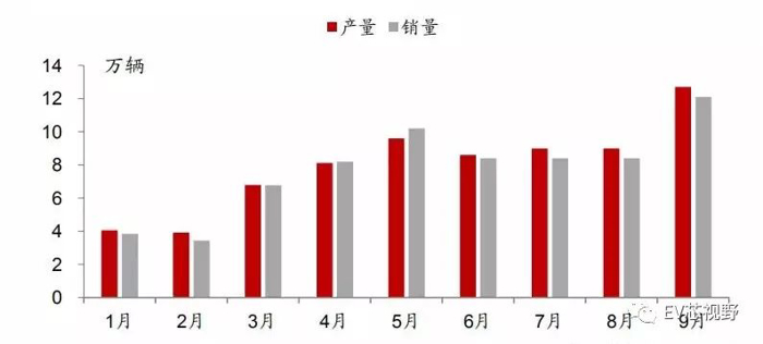 公安部交通管理局近日发布数据显示,截至2018年9月底,全国新能源汽车保有量达221万辆。按照中汽协数据,9月新能源汽车产销量分别为12.7/12.1万辆,1-9月累计产销量分别为73.5/72.1万辆,同比增长73.0%/、81.1%。随着政策持续加码,根据历年产销数据趋势图,2018年产销突破百万辆有望。