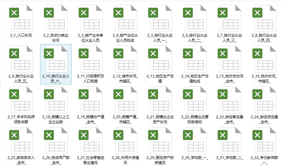 数据格式:Excel版本(以“地级以上城市统计资料”为例):