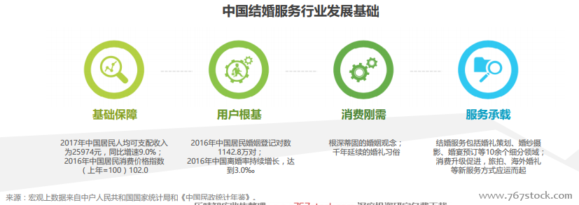 聚合用户降低企业获客成本,整合信息提高用户决策效率。2015年中国居民结婚登记人口占中国总人口比例为1.7%,整体备婚人口占比相对较低,且由于备婚人群分散度较高而且结婚消费不具有连续性,对于结婚服务企业而言单客获客成本较高,而结婚服务线上平台通过整合产品信息和社交化的内容分享,将备婚用户聚合并匹配给结婚服务企业,其核心价值在于大幅降低传统结婚服务企业的获客成本。