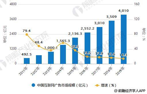 2011-2019年中国互联网广告市场规模统计及增长情况预测
