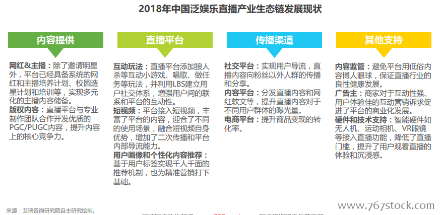 内容供给、平台运营、传播扩散和服务支持模块趋于成熟。直播平台拓展优质内容,添加更多互动性玩法,渗入到更多用户场景,并通过精准解读用户需求,推送适当的内容留住用户。社交、内容、电商平台帮助直播平台实现了从前期的用户引流,到内容分发和扩散,直至商品变现等一系列环节。内容监管的增强,广告主要求的提高也推动直播平台通过内容取胜,健康发展。直播相关的技术发展则提升了用户体验,为直播营销提供更多可能性。