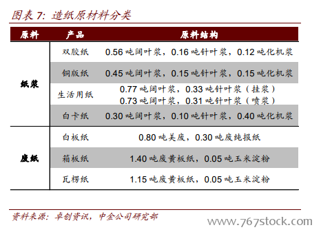 文化纸和包装纸是造纸行业主要产品:按用途不同,造纸行业可分为包装纸、文化纸、生活纸及特种纸四类,其中包装纸、文化纸是产量最大的两个品类。包装纸以箱板、瓦楞纸为主,主要用于食品饮料、家电、数码等产品的包装,文化纸则主要包括未涂布印刷书写纸、涂布纸、新闻纸等,以杂志、书本制作为主要用途。细分品类占比上,箱板纸、瓦楞纸、未涂布印刷书写纸产量占比位居前三,产量占比分别为 21%、21%、16%。