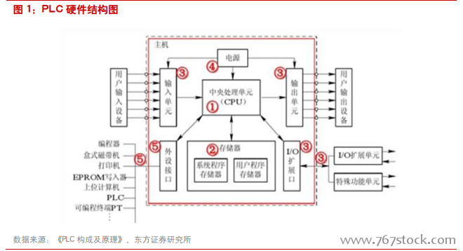 根据 PLC 的功能不同,可将 PLC 分为低档、中档及高档三类。低档 PLC 仅具备逻辑运算功能,如定时、计数、移位以及自诊断、监控等基本能力,还可有少量模拟量输入/输出、算术运算、数据传送和比较及通信等功能,主要用于逻辑控制、顺序控制或少量模拟量控制的单机控制系统;中档 PLC 在覆盖低档 PLC 的功能外,还叠加了较强的模拟量输入/输出、数制转换、数据传送和比较、算数运算、远程 I/O 及通信联网等功能;有些还可增设中断控制、PID 控制等功能,适用于较为复杂的控制系统;高档 PLC 除具备中档 PLC 的功能外,还包含了如矩阵运算、位逻辑运算、平方根运算及其他特殊功能函数的运算、制表及表格传送功能等,高档 PLC 的通信联网功能更强,可用于大规模过程控制或构成分布式网络控制系统,是实现工厂自动化底层数据采集的关键设备。伴随工业互联网成为我国自动化升级改造的大势所趋,高端 PLC 作为底层核心设备的意义将日益凸显,其适用范围和渗透率也将由较大提升。