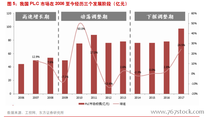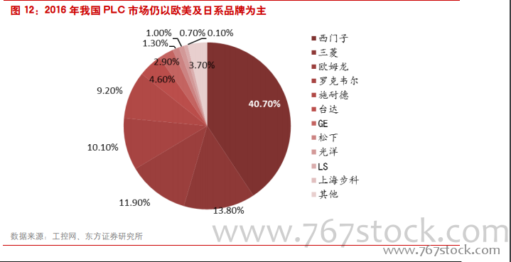 我国 PLC 的发展历史可以大致分为导入期、初创期、发展期及进口替代四个阶段。从上世纪 70年代后期至今,PLC 在我国已有近 40 年的发展历史。80-90 年代为 PLC 产品导入期,这一时段我国大部分的工控产品均完全依赖进口;90 年代到 2000 年是我国工控企业初创期,国内工控市场出现规模化增长,本土 PLC 品牌也开始出现;2000-2005 年是我国工控企业的发展期,国内经济的高速增长推动了 PLC 市场需求的快速提升,个别工控高端技术也开始扩散;2006 至今是国内品牌的进口替代加速期,我国优秀的工控企业开始上市,对行业格局影响深远。