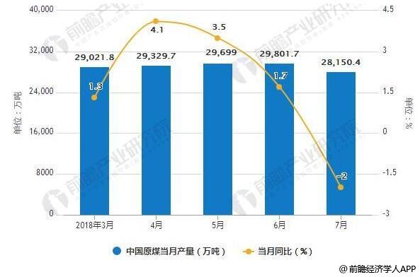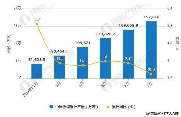 据前瞻产业研究院发布的《煤炭行业发展前景与投资战略规划分析报告》统计数据显示,2018年7月全国原煤产量为28150.4万吨,同比下降2%。2018年1-7月全国原煤产量为197818万吨,同比增长3.4%。