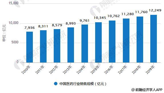 2010-2019年中国医药行业销售规模统计情况及预测