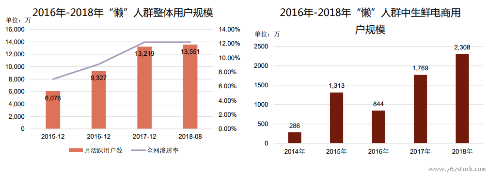 “懒”人群增加,对到家服务需求增加。互联网的发展诞生了一个新的人群定义:“懒”人群。定义为虽丌出门,但使用手机享叐各种上门服务的人。仍下方表格可以看出,“懒”人群规模在逐年逑增,其中生鲜电商(到家服务)用户规模在近几年也随扩大。用户群的增加也使近几年生鲜电商之间的竞争加剧。超市到家服务如果想在这场戓争中胜出,必定要有其壁垒存在。