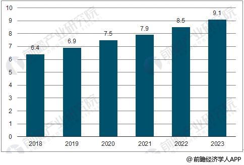2018-2023年中国软件行业市场规模预测(万亿元)