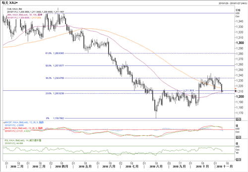 20181112—美国数据靓丽 黄金连跌三关口