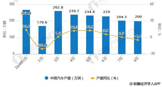 2018年1-8月中国汽车产销量统计及增长情况