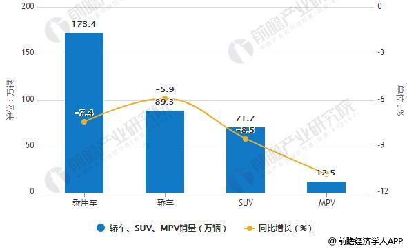 2018年1-8月轿车、SUV、MPV销量统计及增长情况