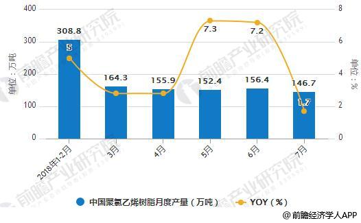 2018年1-7月中国聚氯乙烯树脂月度产量统计及增长情况