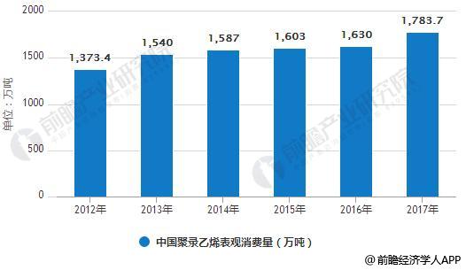 2012-2017年中国聚录乙烯表观消费量统计情况