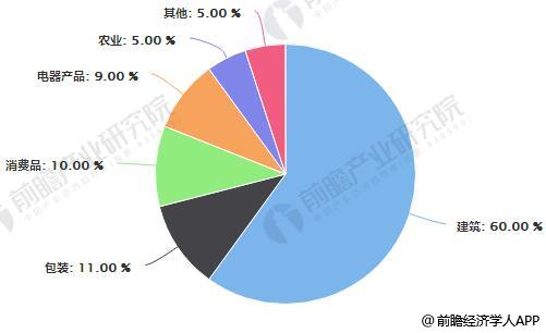 聚氯乙烯具有耐磨性、抗腐蚀性、难燃性、电绝缘性等优良性能,广泛应用于建筑、电力、公用事业等领域,已成为广泛应用的五.大通用塑料(聚丙烯、聚氯乙烯、聚乙烯、丙烯腈-苯乙烯-丁二烯共聚物、聚苯乙烯)之一。其中,建筑行业消费量占比60%左右,主要使用通用型树脂SG-5、SG-7、 SG-8 制造的型材、管材和片材,以取代传统的木材、金属、水泥等。