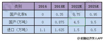 中国C919 干线客机、ARJ21 及新周系列支线客机、运-20 重型军用运输机、歼10 系列/ 歼20/ 歼31 等军用航空器、通用航空器项目,预计将把80%的航空铝板采购机会给中国本土企业,基于现有铝加工的装机水平和研发投入,预估2018年国产铝材用量占比将提升至35%,2022年可提升至75%,2025年全部国产化将达到95%。