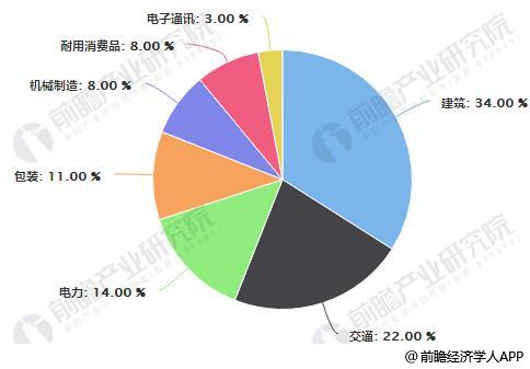 虽然我国是全球铝材第一大消费国,但从消费结构上与欧美发达国家存在较大差异。建筑业是我国铝材最大应用领域,占比33%,其次是交通,电力、包装、机械制造、耐用消费品和电子通讯,分别占比21%、12%、10%、8%、8%和4%。而以美国为例,交通运输是第一大用铝领域,占比39%,而建筑领域占比为25%,包装领域占比为16%。