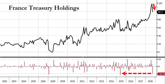 法国9月持仓排在第16位,当月减持了207亿美元,抛售力度仅次于爱尔兰,但降幅惊人,持仓环比下降17%以上,抹平了前两个月大多数增持规模,7月和8月法国合计增持250亿美元。