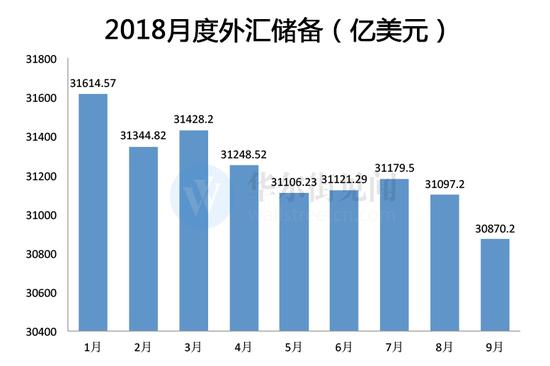 上月中国央行公布数据显示,9月中国外储环比减少227亿美元,连续两个月下滑,降至去年7月以来最低水平。