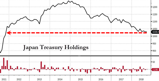 TIC报告还显示,9月日本持有美债规模仍仅次于中国,持仓环比减少19亿美元,降至1.028万亿美元,继8月创将近七年新低之后又创七年来新低,为连续第二个月减持。9月减持规模低于8月,8月减持56亿美元,抵消了7月增持规模,6月持仓持仓创六年新低,环比减持184亿美元。
