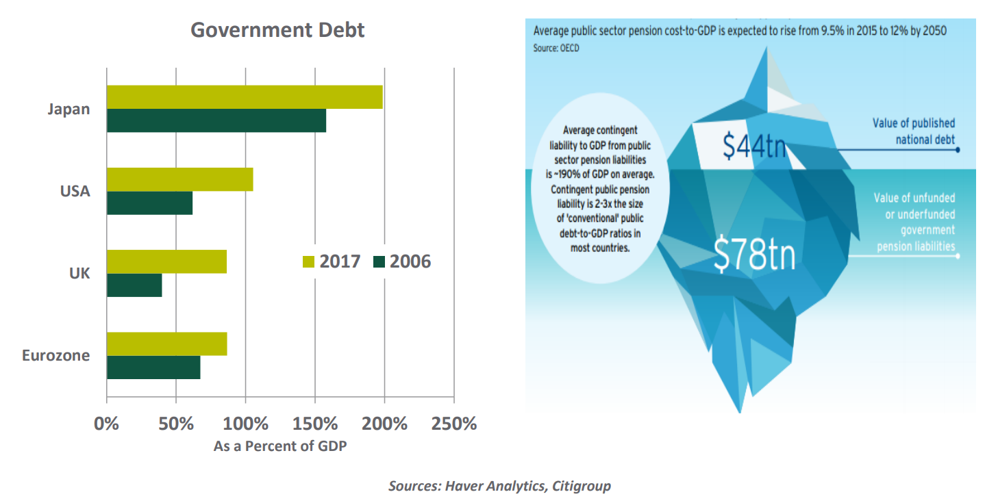 他们认为,自金融危机以来债务并没有真正减少,而只是被重新分配。个人和银行的杠杆有所减少,但是政府债务的增加早已超过私营部门减少的部分。