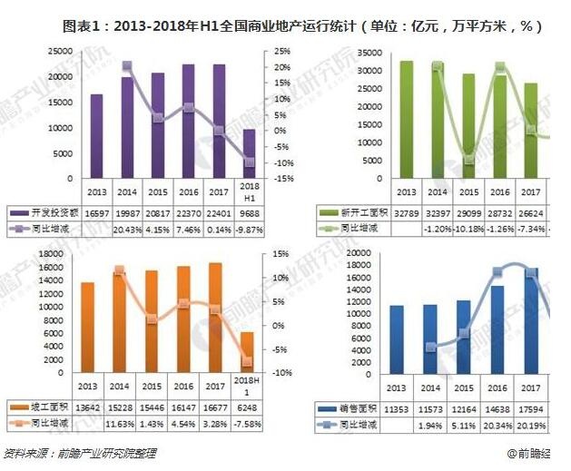 2018年上半年,商业地产开发投资额9688亿元,同比下降9.9%,新开工面积11956万平方米,同比下降8.1%;2018年上半年,全国商业地产销售面积达7206万平方米,销售规模依然较大。