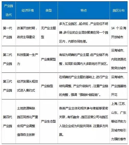 产业园区显然已成为各地经济发展的重要载体和强力引擎。但随着我国经济发展进入不同的发展阶段,经济环境的变化对产业园的可持续发展提出了挑战。我国产业园区的发展经历了以下为四个阶段: