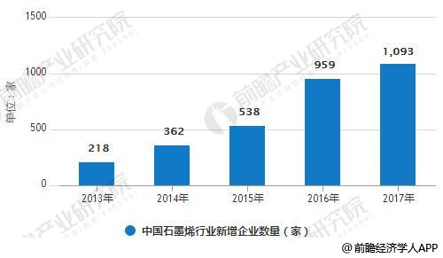 2013-2017年中国石墨烯行业新增企业数量统计情况