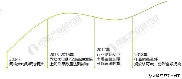 所谓网络大电影,即时长与院线电影相近,但制作周期相对较短,制作成本相对较低,以互联网为首发平台的电影形式。网络大电影的概念在2014年由爱奇艺率先提出,并在之后的4年中赢来了爆发式的增长。在这四年中,不断涌现出如《斗战胜佛》、《老九门番外之二月花开》等优秀作品。相较于传统院线电影,网络大电影因其制作周期和制作成本相对较低而受到众多行业新秀的青睐,同时依托于各类视频平台也使其曝光量和商业价值有所保障。