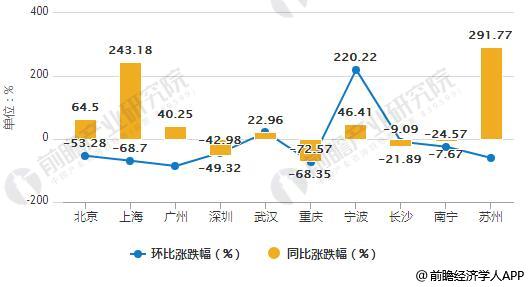 2018年十一黄金周各城市成交面积TOP10及同环比涨跌幅统计情况