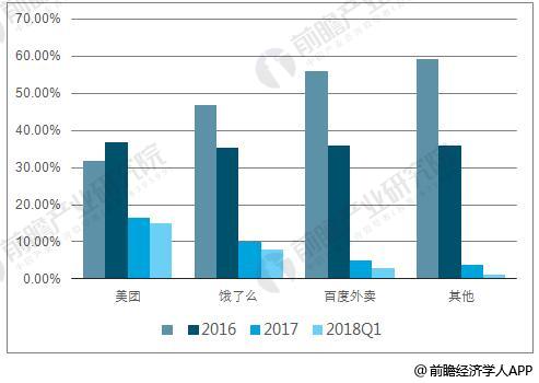 2015-2018年Q1外卖行业参与者市占率统计情况