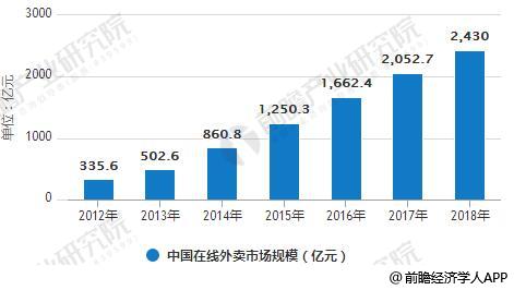 2012-2018年中国在线外卖市场规模统计情况及预测