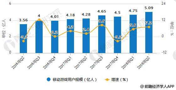 2016-2018年Q2中国网络游戏用户规模统计及增长情况