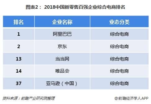 据《2018中国新零售百强》榜单,从财务数据、零售基础、数字化、渠道建设及模式创新等五大维度对中国零售企业进行了评估排名,榜单可以呈现出当前零售企业经营现状和未来战略布局的种种变化。排名第一二位的为两大综合电商,分别为阿里巴巴和京东,其他综合电商排名也较为靠前。