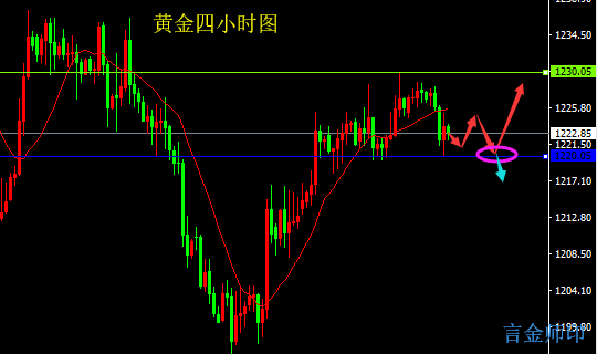 策略二:建议下方触及1221-1220附近多单进场,止损放在1218,目标看1225-1228附近