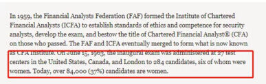 由于CFA的考生主要是有志于从事金融行业者,我们也可以从这个数据中看出,女性正不断在金融舞台涌现,成为专业投资人士,并发光发热。
