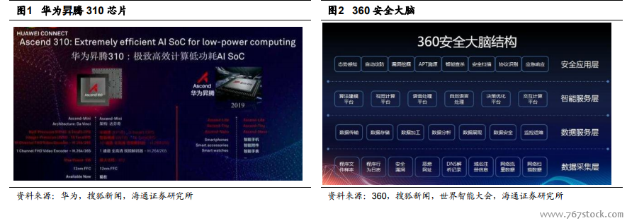 芯片进入需求导向型发展阶段,AI+云从互联网向物联网渗透。今年以来,无论是阿里成立平头哥半导体公司,预计明年推出第一款 AI 芯片;还是百度云 AI 芯片---昆仑;亦或是华为 Ascend(昇腾)系列芯片的发布,互联网和科技巨头纷纷在 AI 芯片端发力,都是希望通过底层算力的提升,助力未来端、边、云的全场景AI 解决方案发展,使得各类语音识别、图像识别等 AI 能力可以在平台端、云端使用。一方面,AI 芯片突破下的算力提升,使得物联网时代庞大的数据有了用武之地;另一方面,各类应用和支持层平台的建立,正是对接人们生活的各领域需求,也反过来倒逼底层计算单元相应变革。