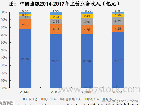 语言、文学等品类市场领先。公司在出版板块的高占比,与公司强大的出版社资源和内容体系密不可分。根据开卷信息统计,2016年公司有5大产品在实体店码洋和网店码洋市占率均为第一,其中包括语言列、文学类、学术文化类、工具书和传记类。其中,在工具书和语言两个品类上,公司产品的市占率分别达到38.85%和70.33%。