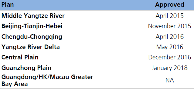 (中国政府批复的城市群建设计划和潜在规划,来源:瑞银)