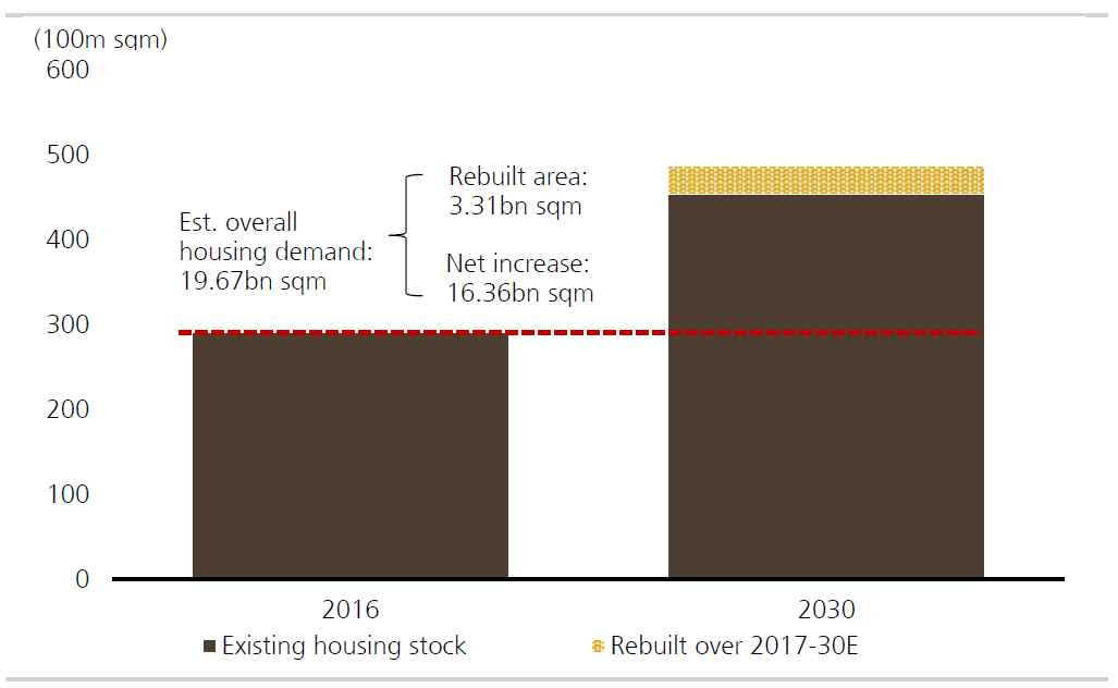 (2017-2030中国新增房地产需求预测,来源:瑞银)