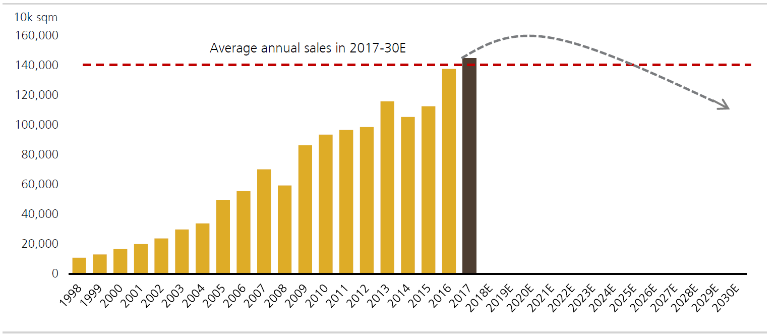 (2017-2030商品住宅销量预测,来源:瑞银)