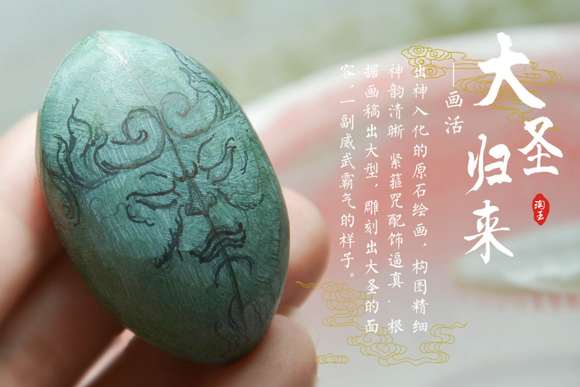 玉雕师酷爱读西游记,喜欢大圣的有勇有谋,不畏强权,无所不能,仙逸自由。因为崇拜孙悟空玉雕师将大圣坚毅的性格品质,用在了玉石雕刻中,对艺术的执着与精益求精的追求值得敬佩。