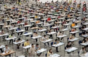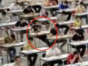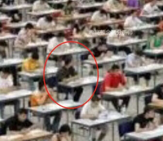 一名考生扭头看后方:听说左后方那个人是学霸