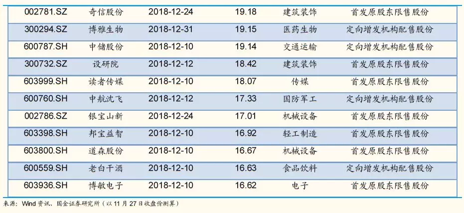 12月A股解禁个股分析