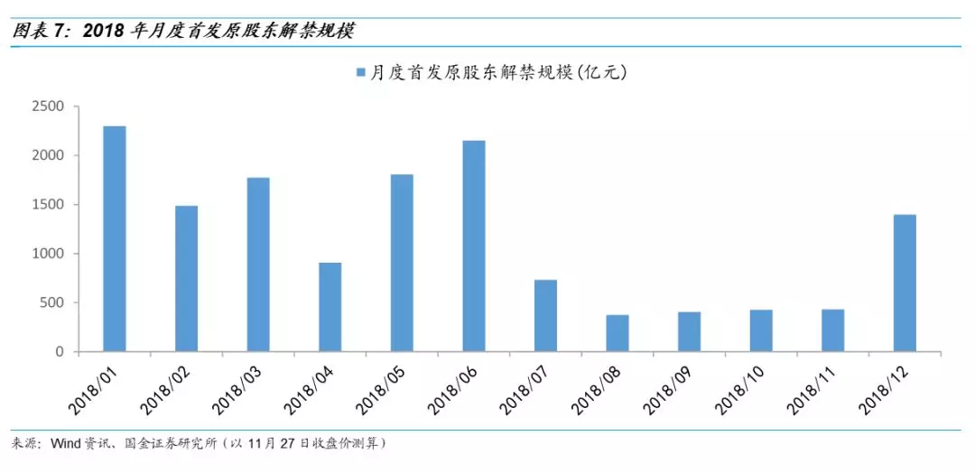 从历史月度数据来看,12月的定增解禁压力在2018年全年中最大,相较11月环比多增1680.49亿元,增幅达204.18%;首发原股东解禁压力在全年中处于中等水平,相较11月环比多增964.30亿元,增幅达222.89%。