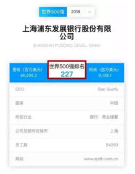 浦发银行位列榜单第227位,较去年上升18位,在上榜中资银行中列第7位,在国内主要的大中型银行中,今年3家实现排名上升,其中浦发银行今年上升的位数最多。