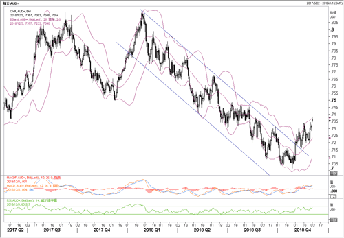 货币:澳元/美元 阻力位2:0.7470 阻力位1:0.7400 即期价格:0.7360 支持位1:0.7300 支持位2:0.7250